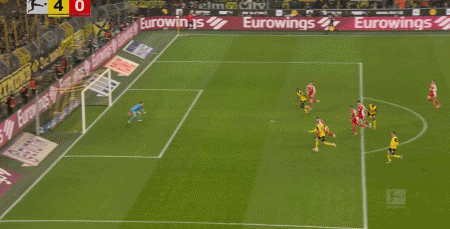 第89分钟,格罗斯右路传中,拜尔头球破门,多特6-0。